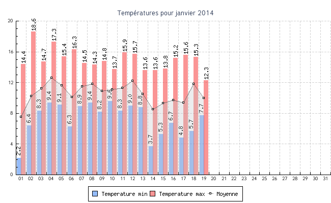 | 19 | 7.7 °C | 12.3 °C | 10.0 °C | 0.0 km/h (0.0 km/h) | N |